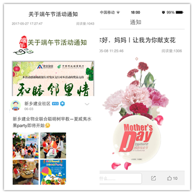 漯河、鄭州、洛陽等分公司將親子運(yùn)動(dòng)會(huì)、鄰里旅行、消夏音樂節(jié)、藝術(shù)團(tuán)義演等活動(dòng)引入社區(qū),倡導(dǎo)業(yè)主以全新理念暢享新型生活方式,感受鄰里共處的曼妙時(shí)光,體驗(yàn)建業(yè)物業(yè)獨(dú)具特色的社區(qū)文化。新鄉(xiāng)、焦作等分公司充分利用建業(yè)一家APP、微信等載體,實(shí)現(xiàn)線上線下的充分互動(dòng),更是贏得了業(yè)主的一致好評(píng),極大的提高了業(yè)主參與度和滿意度。而書法、讀書會(huì)、籃球、太極等等社群組織的組建、運(yùn)營(yíng)和活躍,亦是本階段的重要成果。