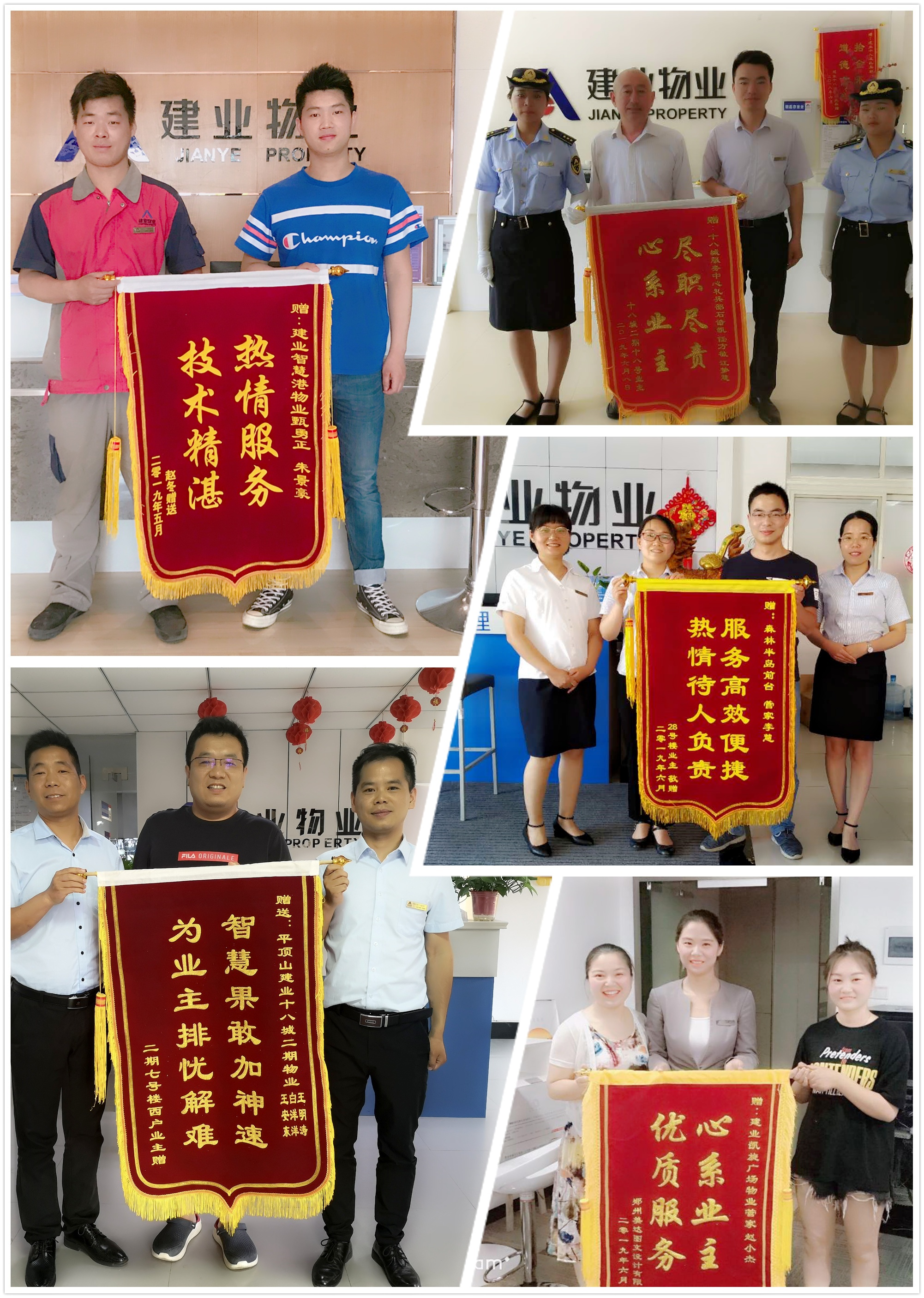 六月,艷陽(yáng)如火,蟬鳴如潮。建業(yè)物業(yè)人滿懷如火的熱情,用服務(wù)為業(yè)主送來(lái)絲絲舒暢。六月份全省在管小區(qū)涌現(xiàn)出好人好事共計(jì)284例,其中收到錦旗65面,表?yè)P(yáng)信127封,來(lái)電感謝及其他92例。